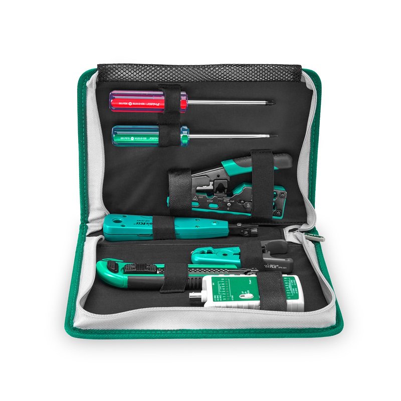 Pro’sKit® 15-in-1 Network Installation Tool Kit with Cable Tester, Crimper, Wire Stripper in Carrying Case