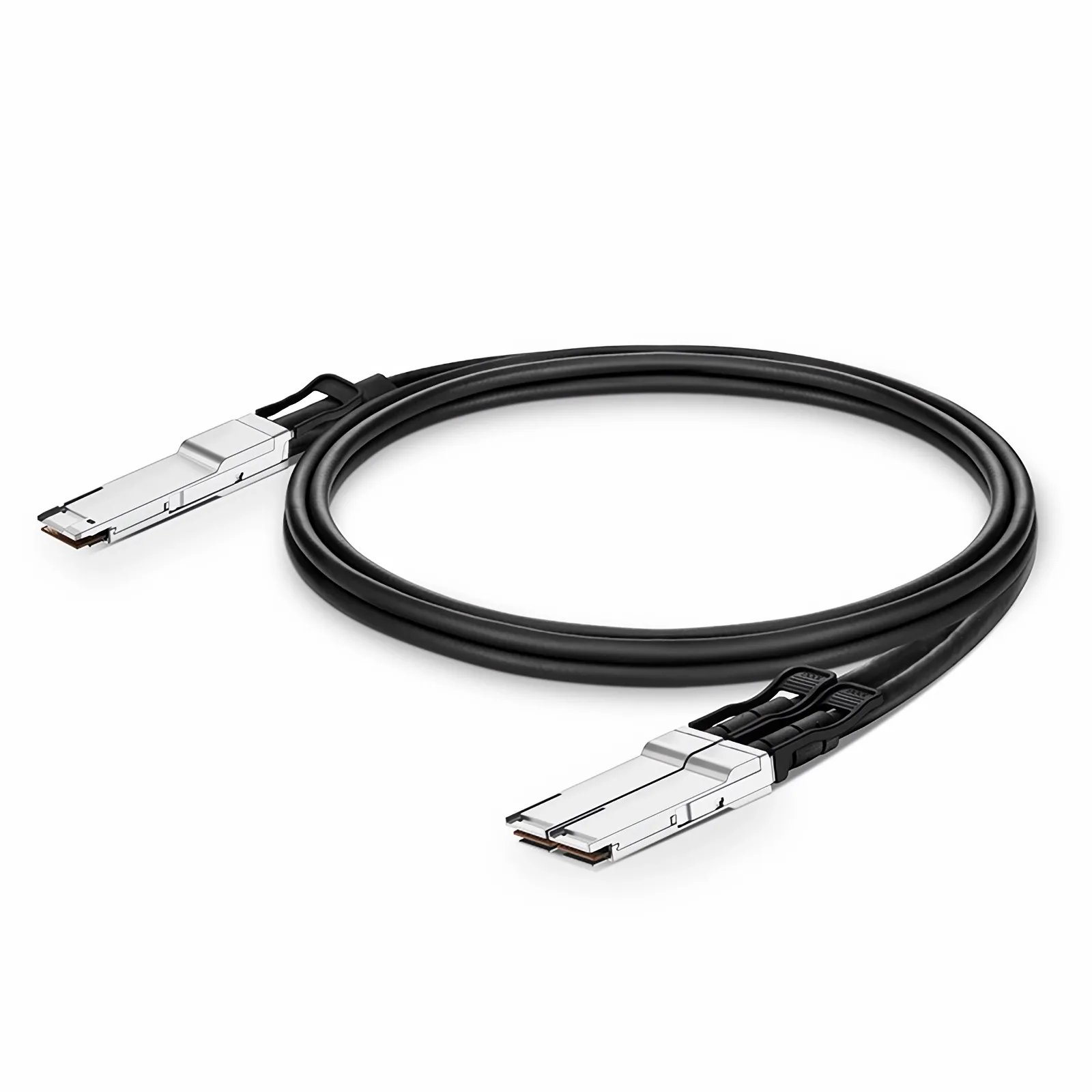 The QSFP-DD to 2x 100G QSFP28 Direct Attach Cable operates over passive copper, which requires no additional power to ensure quality connectivity. This breakout cable is compliant with IEEE 802.3bj, SFF-8679 and SFF-8636 standards. It provides a connection of a 200G QSFP-DD port on one end and to two 100G QSFP28 ports on the other end and is suitable for cost-effective close-range interconnections within the equipment room of telecom operators or data centres, etc.